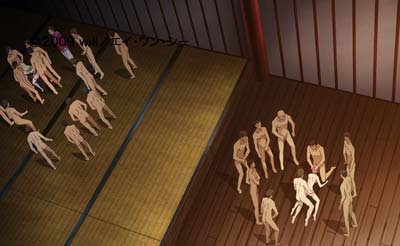 二人が帰って来ないことを心配した吹雪と春風はテレビディレクターの手引きで二人がいる廃校へと案内される。そこはシシ追い祭りの準備として「棒倒し」と呼ばれる連続フェラチオの真っ最中であった。