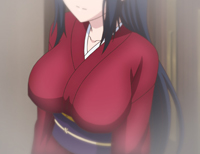 艶やかな着物の下で男を誘うように爆乳が躍る。