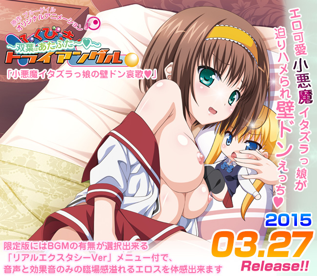 ふくびきトライアングルから今回は美晴お姉ちゃんは後回して、双葉ちゃんメインのあふたーえっち! ブランド初の小悪魔っ娘が再び存分に弄られハメられ尽くしで、稚拙な肢体も完熟搾りっ!